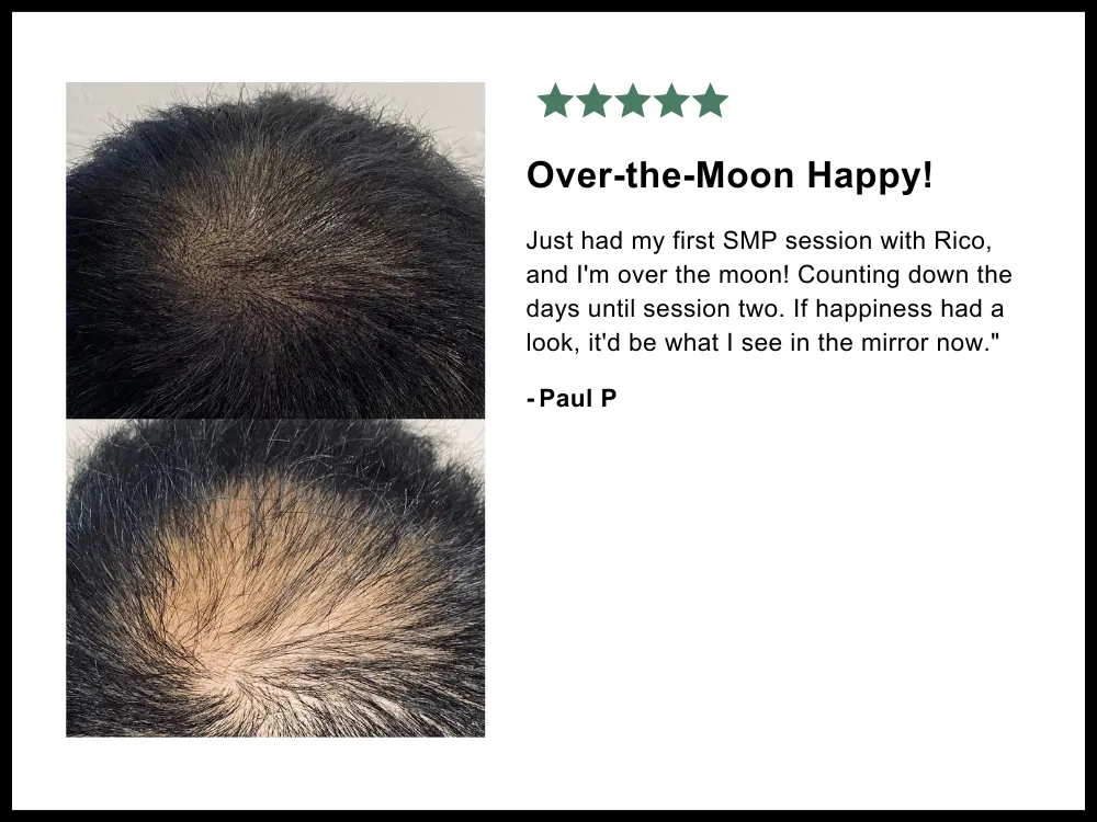 Wave goodbye to balding once and for all! Our SMP isn't just a quick fix; it's a lifelong solution. Imagine waking up every day with a perfectly styled, worry-free hairline. No repeats, no reversals – just lasting, confident hair days, every day.
